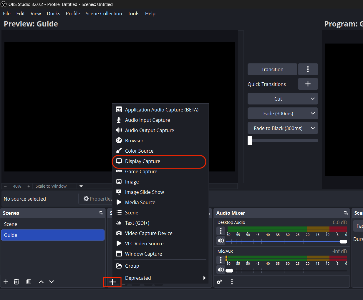 - Leave "Window Capture" or "Application Capture" unselected unless you want to focus on a specific window or application.